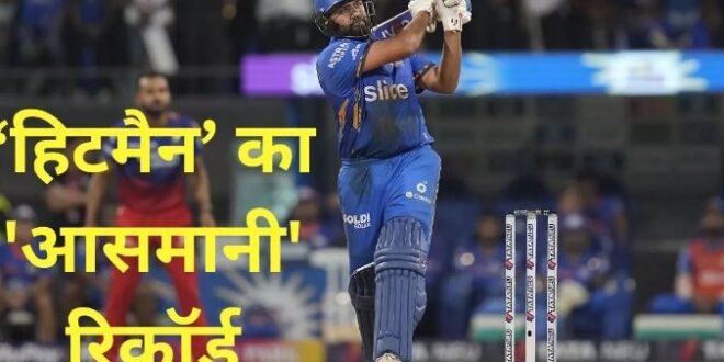 मुंबई इंडियंस के स्‍टार ओपनर रोहित शर्मा ने वानखेड़े स्‍टेडियम पर एक आसमानी रिकॉर्ड अपने नाम कर लिया है। ‘हिटमैन’ के नाम से मशहूर रोहित शर्मा वानखेड़े स्‍टेडियम पर 100 टी20 छक्‍के जड़ने वाले पहले खिलाड़ी बन गए हैं। मुंबई इंडियंस ने गुरुवार को आईपीएल 2024 के 25वें मैच में रॉयल चैलेंजर्स बेंगलुरु के खिलाफ यह उपलब्धि हासिल की।